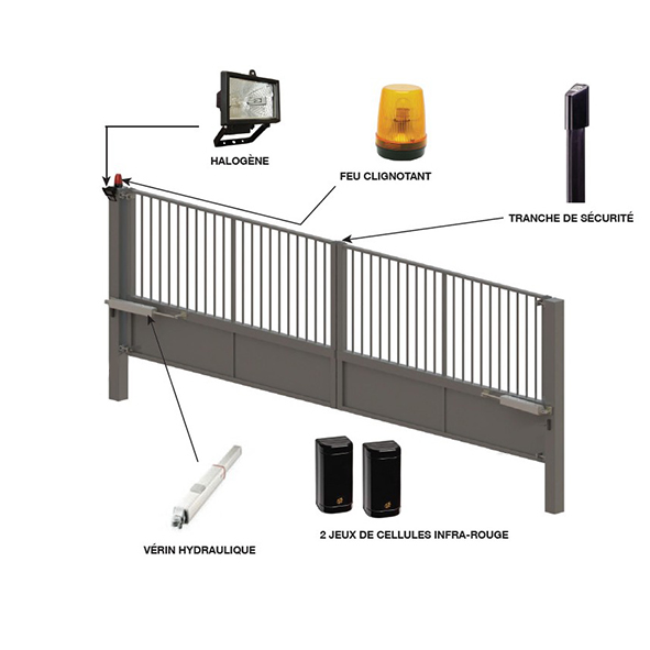 - Opérateur : Par vérin hydraulique, mécanique, bras articulé ou enterré, permet l’ouverture des vantaux