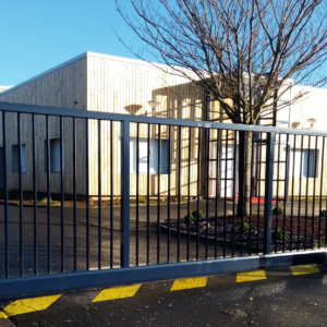 - Portail barreaudé coulissant en acier Galvanisé Sendzimir Z275 selon EN10305 revêtu d’une plastification haute adhérence par poudrage polyester épaisseur mini de 80µm